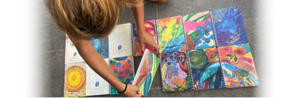 Las imágenes que reinan las portadas son Obras pintadas por mí, tienen un tamaño original grande y una forma de poder hacerlas llegar a las personas y hogares de cualquier lugar del planeta ha sido esta. Ellas están vivas y quieren expandirse.